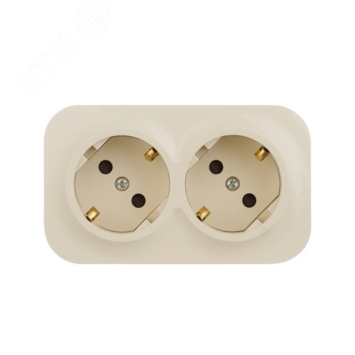 Розетка 2-местная для открытой установки с заземлением с защитными шторками с предварительным подключением 16А слоновая кость QUTEO