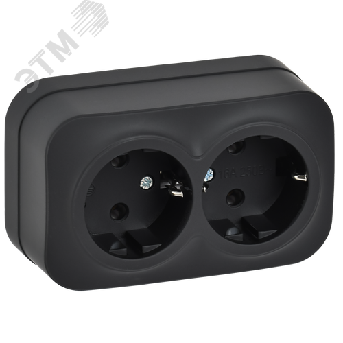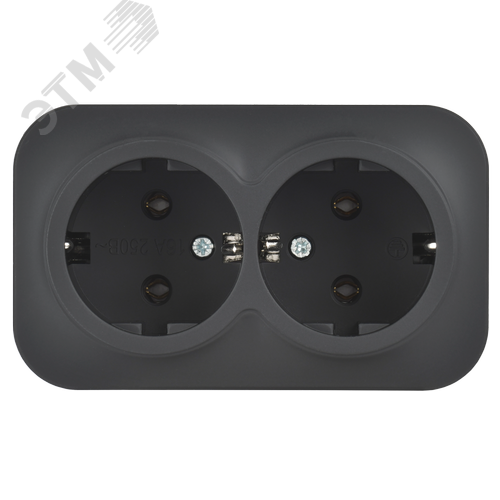 GLORY Розетка 2-местная для открытой установки с заземлением без защитных шторок 16А РС22-3-ХЧм черный матовый IEK