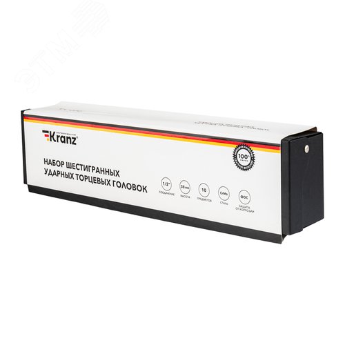 Набор шестигранных ударных торцевых головок 1/2', 38 мм, 10-24 мм, 10 предметов
