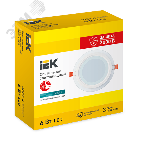 Светильник декоративный светодиодный LED встраиваемый ДВО 1620 со стеклом круг 6Вт 4000К IP20