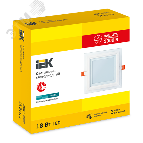 Светильник декоративный светодиодный LED встраиваемый ДВО 1625 со стеклом квадрат 18Вт 4000К IP20
