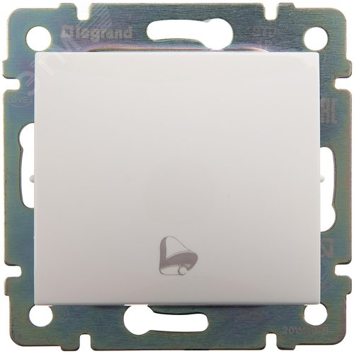 Выключатель 1-клавишный самовозвартный с символом звонка 10А схема 1P безвинтовое крепление белый VALENA