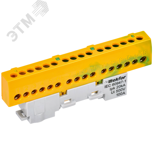 TEKFOR Шина PE земля изолированная на универсальном держателе 6х9-16-ЖЗ IEK