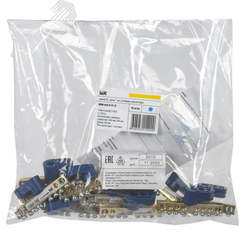 Шина N ноль на одном угловом изоляторе ШНИ-6х9-8-У1-С