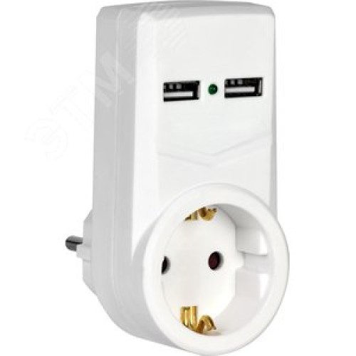 Адаптер Т-01/01 1 место 2P+PE 16А 2хUSB 2,1A белый