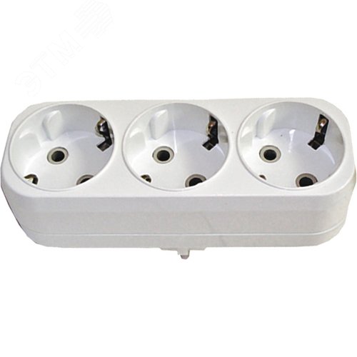 Разветвитель электрический 3 гнезда с заземлением 16А 250В плоский белый