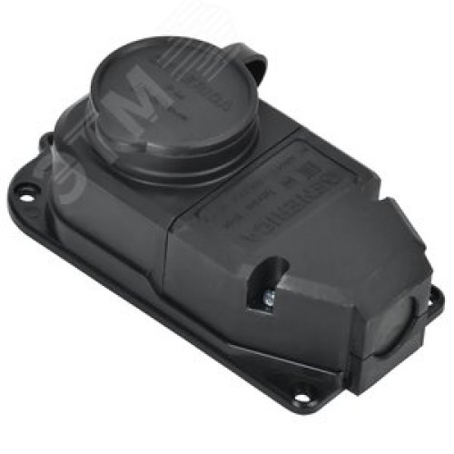 Розетка колодка с защитной крышкой 16А IP44 каучук черная GENERICA