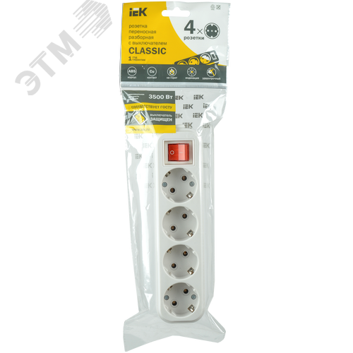 Розетка переносная разборная выключатель К04В 4 места CLASSIC