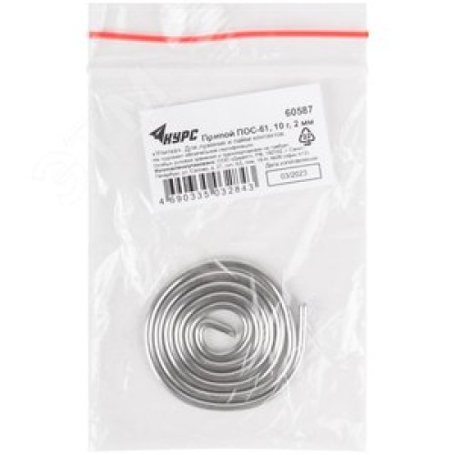 Припой ПОС 61 c канифолью, проволока диаметр 2 мм, ''улитка'', 10 гр.
