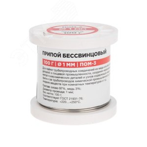 Припой ПОМ-3, 100г,1 мм, (олово 97%, медь 3%), бессвинцовый, ГОСТ 21931-76, катушка