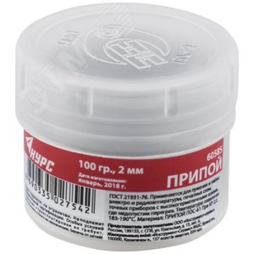 Припой оловянно-свинцовый ПОС 61 без канифоли, проволока диаметр 2 мм, 100 гр. ( в баночке )
