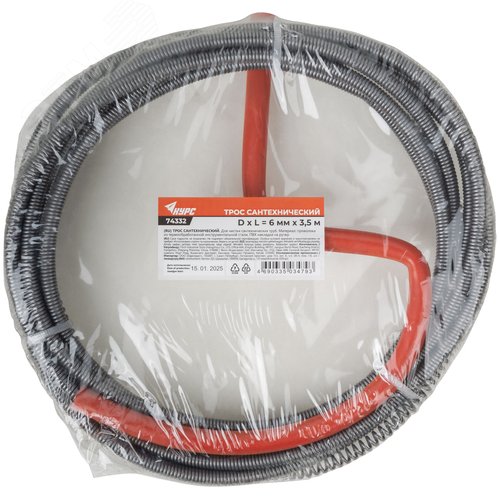 Трос сантехнический для чистки труб 3,5 м x 6,0 мм