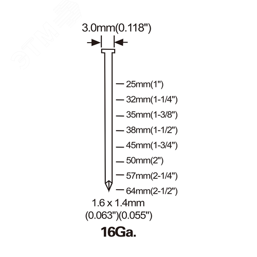 Штифт тип T/SK400 для пневмо пистолета (45 мм, тип T/SK400/16ga, 2500 шт/уп)
