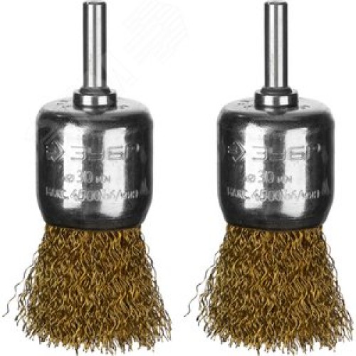 Набор щеток кистевых для дрели, витая стальная латунированная проволока 0,3мм, 30мм, 2шт ''Профессионал''.