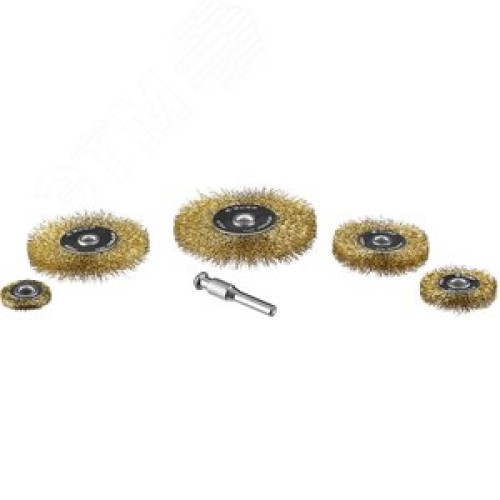 Набор щеток дисковых для дрели, витая стальная латунированная проволока 0,3мм, 5 шт ''Профессионал''.
