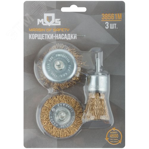 Корщетки со штифтом, набор 3 шт (колесо 50 мм / чашка 50 мм / венчик 25 мм)