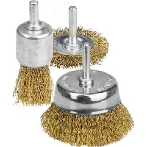 Комплектация 3 щетки крацовки - кистевая 25 мм, дисковая 50 мм, чашечная 50 мм.