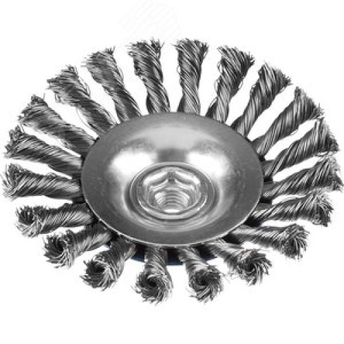 Щетка коническая для УШМ, плетеные пучки стальной проволоки 0,5мм, 100ммхМ14 ''Профессионал''.
