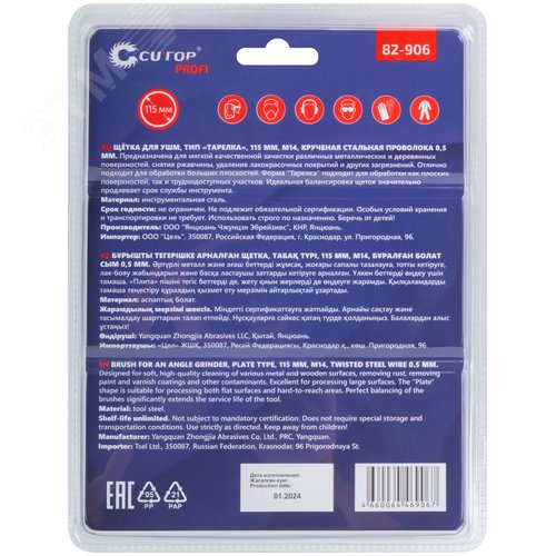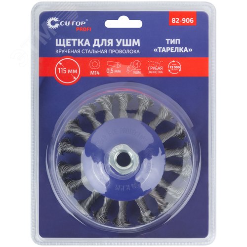 Щетка для УШМ, М14, Тарелка, крученая проволока 0,5 мм, 115 мм, блистер, Profi