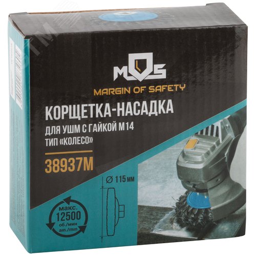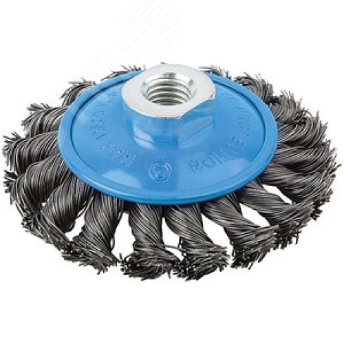 Кордщетка, тип ''колесо'' с наклоном, гайка М14, стальная витая проволока 115 мм