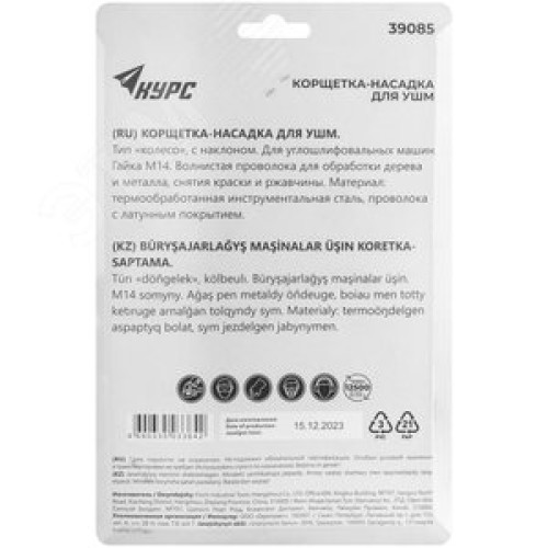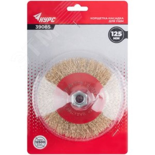 Корщетка-колесо с наклоном, гайка М14, стальная латунированная волнистая проволока 125 мм, блистер