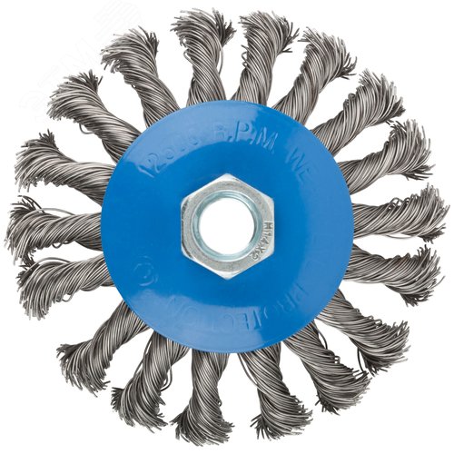 Кордщетка, тип ''колесо'' с наклоном, гайка М14, стальная витая проволока 100 мм