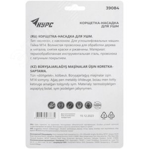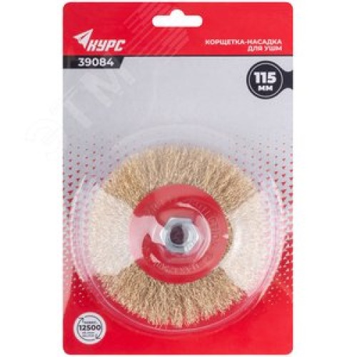 Корщетка-колесо с наклоном, гайка М14, стальная латунированная волнистая проволока 115 мм, блистер