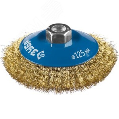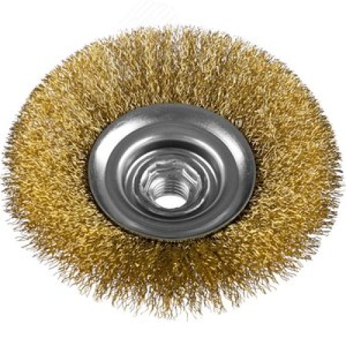 Щетка коническая для УШМ, витая латунированная стальная проволока 0,3мм, 125ммхМ14 ''Профессионал''.