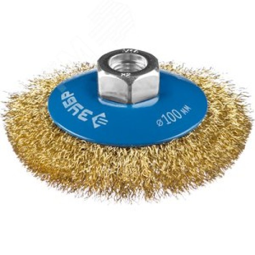 Щетка коническая для УШМ, витая латунированная стальная проволока 0,3мм, 100ммхМ14 ''Профессионал''.