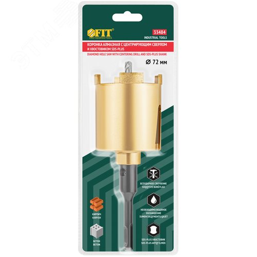 Коронка кольцевая по бетону алмазная безударная в сборе 72 мм