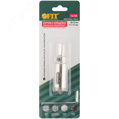 Коронка кольцевая по керамограниту, камню и кафелю алмазная с центровочным сверлом 20х67 мм