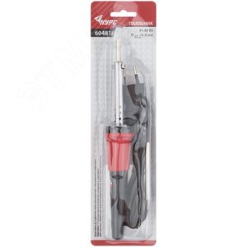 Паяльник 220 В, пластиковая ручка, доп-но подставка для паяльника и два сменных жала, D=4.8 мм, 40 Вт