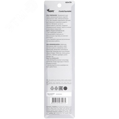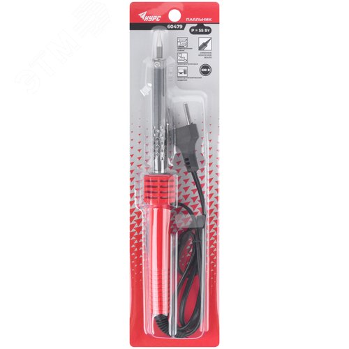 Паяльник 220 В, пластиковая ручка, конусное латунное жало, 55 Вт