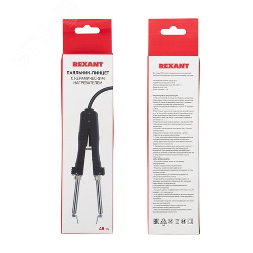 Паяльник-пинцет с керамическим нагревателем, 220 В/48 Вт