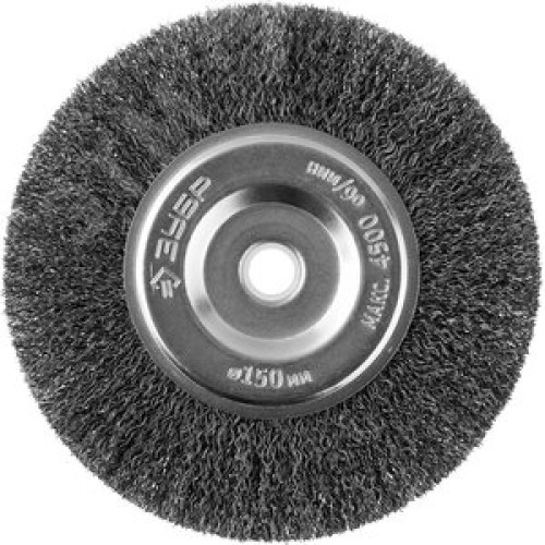 Щетка дисковая для точильно-шлифовального станка, витая стальная проволока 0,3мм, 150х12,7мм ''Профессионал''.
