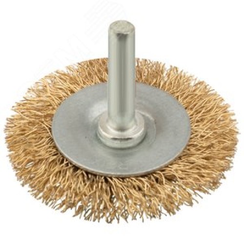 Кордщетка дисковая прямая, со шпилькой, стальная латунированная волнистая проволока 50 мм