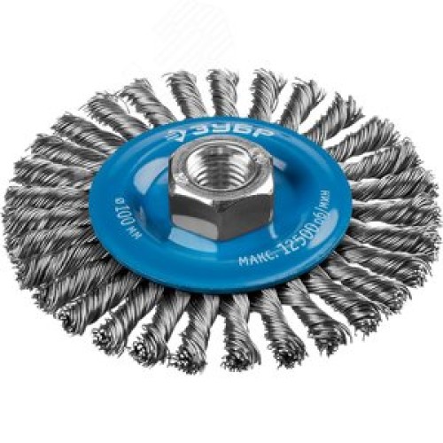 Щетка дисковая для УШМ, плетеные пучки стальной проволоки 0,5мм, 100ммхМ14 ''Профессионал''.
