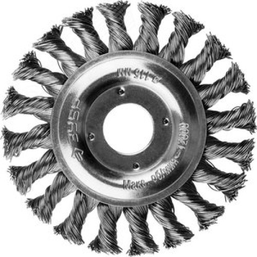 Щетка дисковая для УШМ, плетеные пучки стальной проволоки 0,5мм, 115х22мм ''Профессионал''.