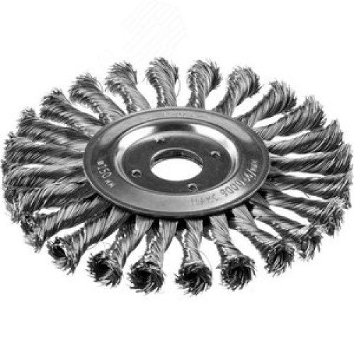 Щетка дисковая для УШМ, плетеные пучки стальной проволоки 0,5мм, 150х22мм ''Профессионал''.