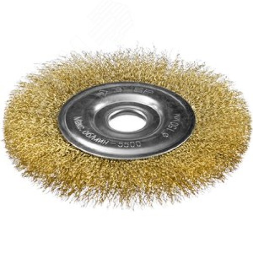 Щетка дисковая для УШМ, витая стальная латунированная проволока 0,3мм, 150х22мм ''Профессионал''.