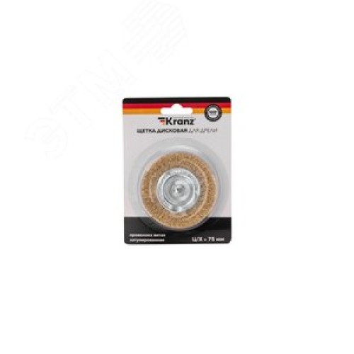 Щетка дисковая для дрели, витая латунированная проволока, 75мм