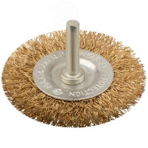 Кордщетка дисковая прямая, со шпилькой, стальная латунированная волнистая проволока 63 мм