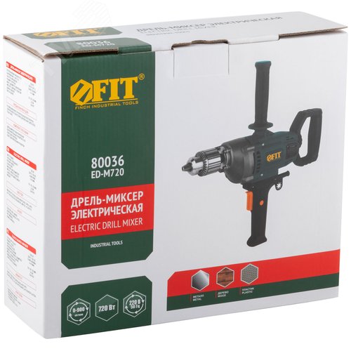 Дрель-миксер 720 Вт, 0-900 об/мин, ключевой патрон 3-16 мм, металл.корпус, рез.накл., коробка