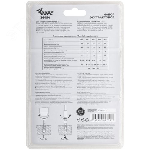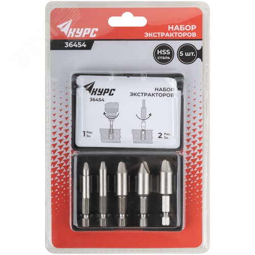 Экстракторы для болтов и шпилек усиленные, HSS сталь, 5 шт