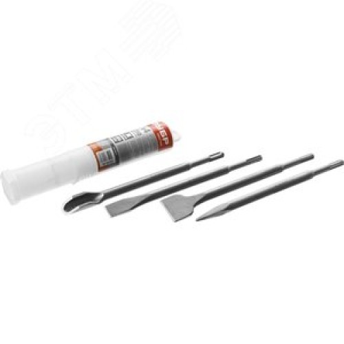 Комплектация 4 зубила - пикообразное, плоское 20 мм, плоское широкое 40 мм, канальное.