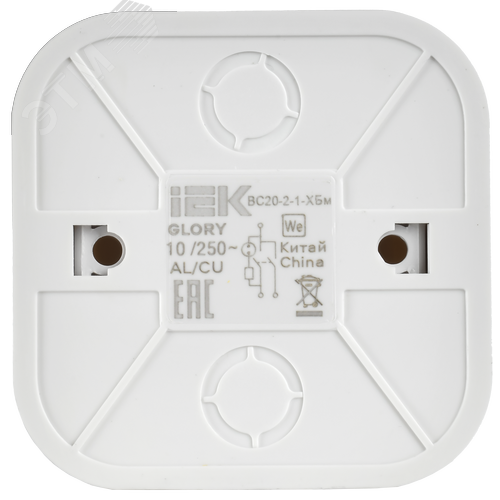 GLORY Выключатель 2-клавишный для открытой установки с индикацией 10А ВС20-2-1-ХБм белый матовый IEK