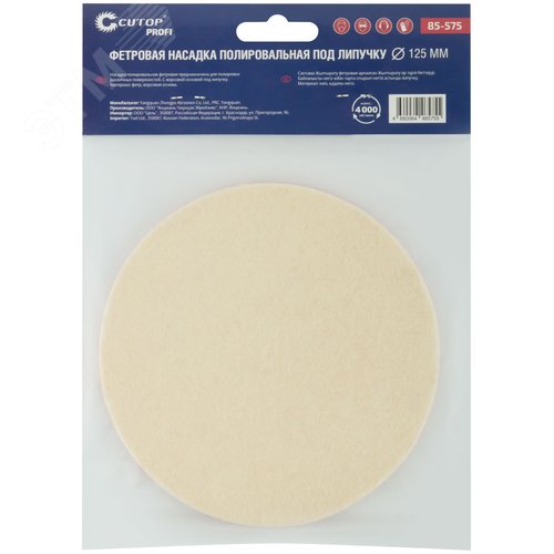 Насадка полировальная под липучку, 125 мм, фетровая (войлок), Cutop Profi