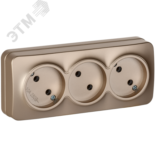 GLORY Розетка 3-местная для открытой установки без заземления без защитных шторок 10А РС23-2-ХШм шампань матовый IEK