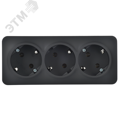 GLORY Розетка 3-местная для открытой установки с заземлением без защитных шторок 16А РС23-3-ХЧм черный матовый IEK