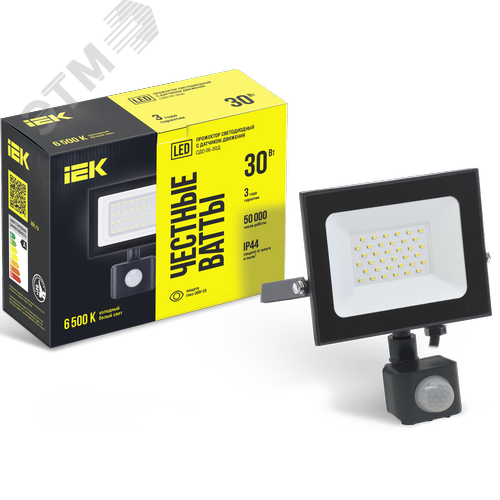 Прожектор СДО 06-30Д светодиодный черный с ДД IP54 6500K